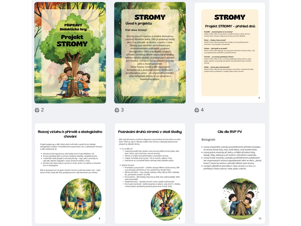 Projekt STROMY – přípravy, didaktické hry pro děti v MŠ
